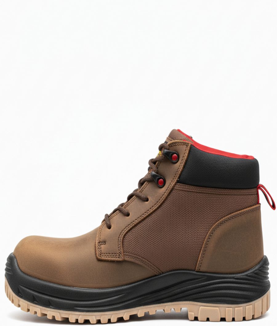 Bota de seguridad en cuero con puntera composite y plantilla anti-perforación.